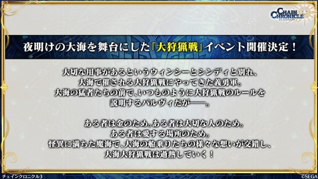 夜明けの大海を舞台にした「大狩猟戦」開催決定!