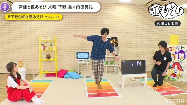 『声優と夜あそび 火【下野紘×内田真礼】#7』“ゆるスポーツ”でゆる~く白熱!? 初体験の“100cm走”に下野さん「悔しい~~!」