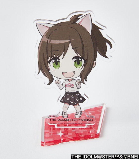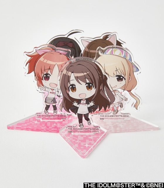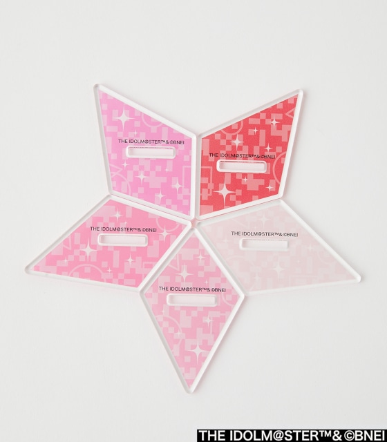 SD描き起こしイラストを使用した、キーホルダーサイズのアクリルスタンド。特殊な形状の台座は、5種すべて組み合わせると星型のフォーメーションに!