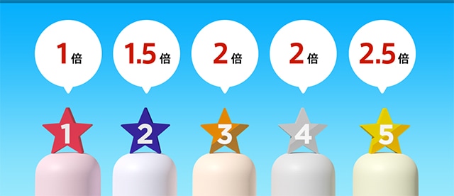 たとえば、判定期間中に100ポイントを獲得した場合、1つ星から2つ星にランクアップし、「ポイント倍率アップ特典」が適用されるとdポイント加盟店におけるdポイント進呈倍率が1.5倍に! 5つ星ランクに該当する場合、dポイント進呈倍率は2.5倍となります。