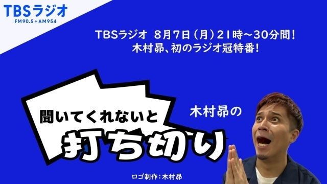 声優・木村昴さん初のラジオ冠番組「木村昴の聞いてくれないと打ち切り」が放送決定 | TBSラジオにて8月7日(月)21時〜