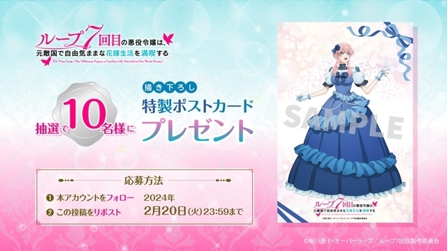 — TVアニメ『ループ7回目の悪役令嬢は、元敵国で自由気ままな花嫁生活を満喫する』公式 (@7th_timeloop) February 14, 2024