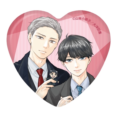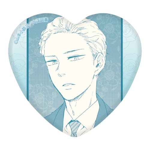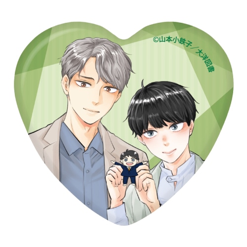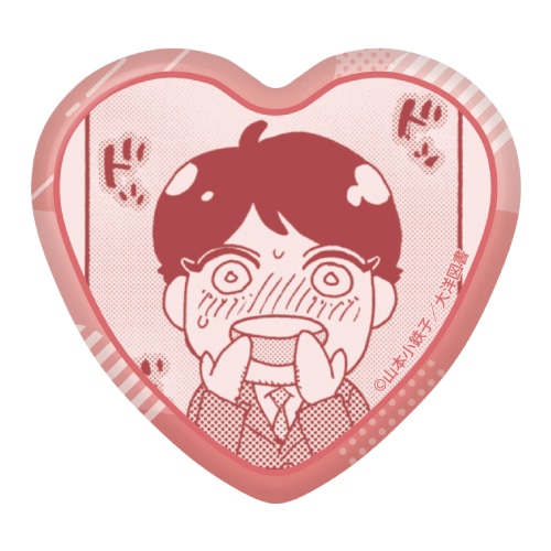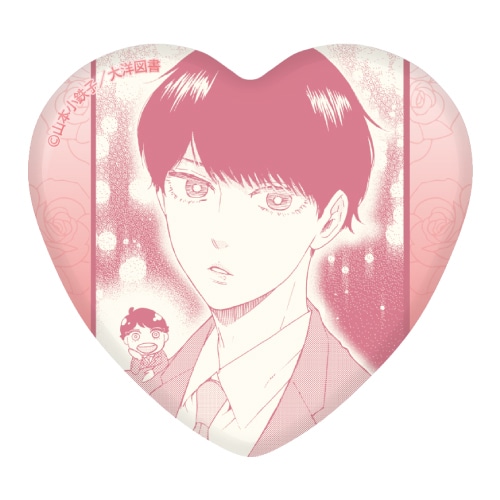 描き下ろしイラストや作中のイラストを使用した“ハート缶バッジ”です。