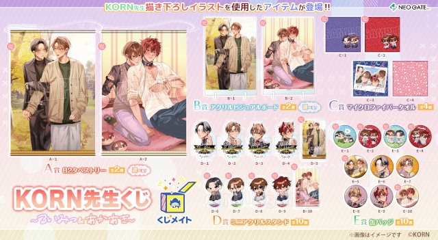 「KORN先生〜るいみつ&あかあき〜」くじメイトがアニメイト通販に登場! 描き下ろしイラストを使用したグッズが当たる!!