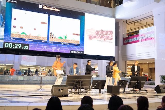次に、AGF2024の開催を記念したゲーム大会『「animate game fight!!」~目指すは1位!秋を満喫5番勝負~』のコーナーがスタート。ゲストの橘龍丸さん、野津山幸宏さん、葉山翔太さんが登壇しました。