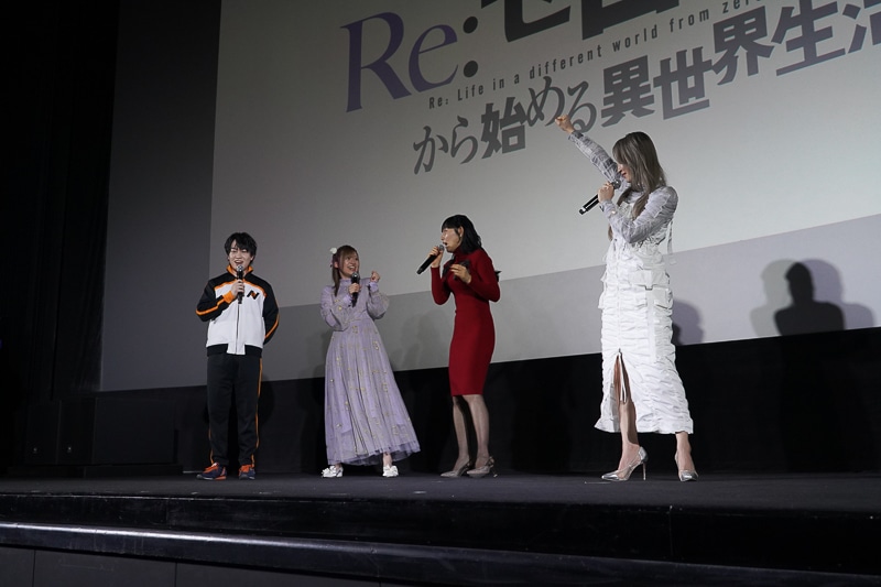 上映前には、ナツキ・スバル役の小林裕介さん、エミリア役の高橋李依さん、ベアトリス役の新井里美さん、シリウス役の安済知佳さんのトークショーも行われました。そのトークショーの模様をお伝えします。