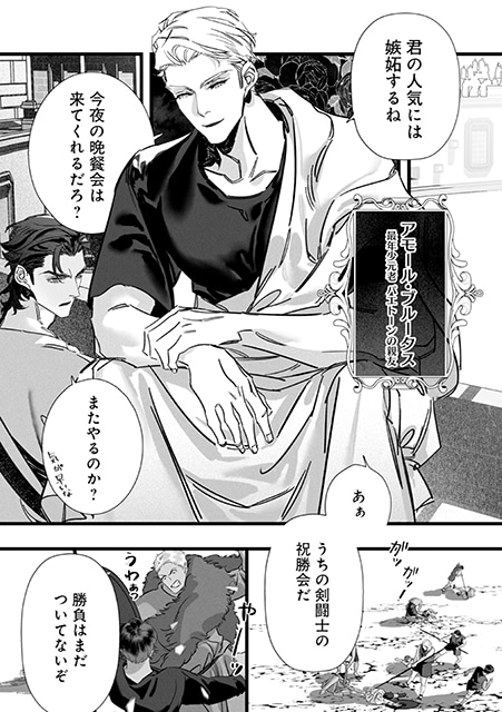 美貌の司祭・パエトーンは、友人の元老・アモールの奴隷剣闘士・地獄犬の新たな使命を聞く。それは「女奴隷と交合し屈強な子を産み落とすための種馬」としての使命。使命遂行を臨むパエトーンは、童貞の地獄犬に自ら交合を指南することになり……。