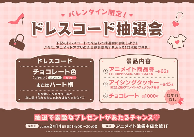 「バレンタイン限定!ドレスコード抽選会」が、アニメイト池袋本店北館1Fにて2025年2月14日14:00~20:00まで実施!