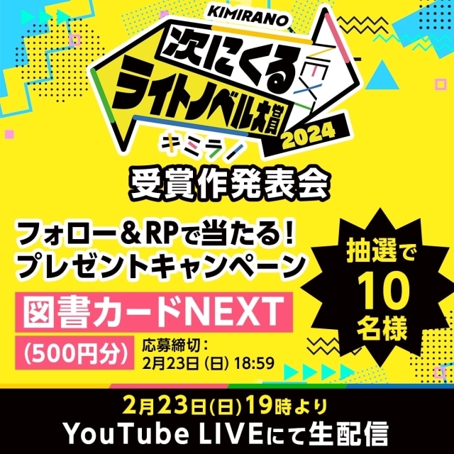 「次にくるライトノベル大賞2024」の受賞作発表会が、2025年2月23日(日)19時より、YouTube Liveにてを開催されます。