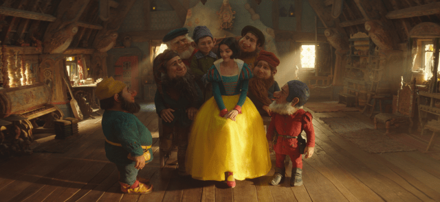 だが、外見の美しさと権力に執着する邪悪な女王によって、王国は闇に支配されていた。女王は、白雪姫の “本当の美しさ”に嫉妬し、彼女の命を狙うが、不思議な森で出会った7人のこびとたちや、城の外の世界へいざなってくれたジョナサンに救われる。