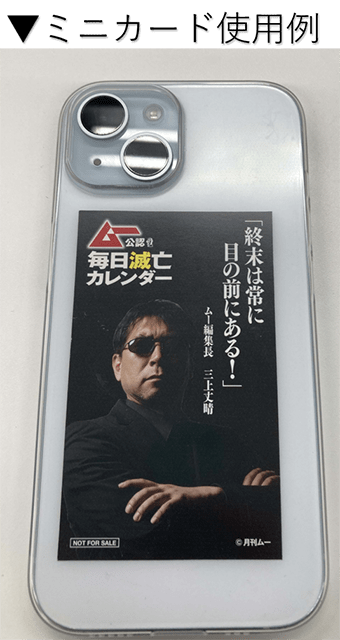「ムー公認 毎日滅亡カレンダー 2025年ver.」を下記対象法人で購入されたお客様に、三上編集長が印象的な「特製ミニカード(55×91mm)」をお渡しします!