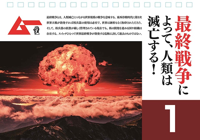 「ムー」において、これまでいくつもの地球滅亡、人類破滅の危険性が提示されてきた。その「滅亡」の可能性を31種類まとめたカレンダーが誕生――。