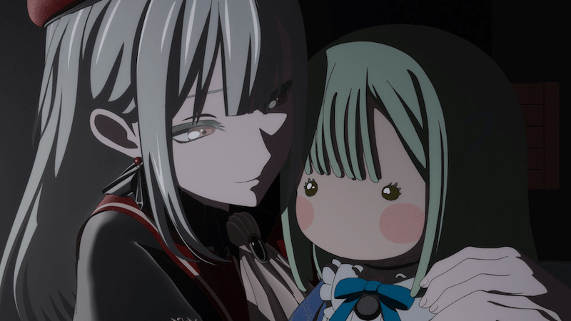 柿本:たとえば第6話でモーティスがそよにすがるシーンのカメラアングルが、そよが祥子にすがるシーン(『It's MyGO!!!!!』 第8話「どうして」)と一緒だったのは、スタッフがコンテに自主的に入れてくれたからです。他にも、RiNG前のモーティスのバズ動画を見せられた祥子が「睦など、知りません」と嘯く際、燈と愛音が光を背負って階上にいる構図や、第4話でモーティスが部屋に来る場面のキューブリックのようなカットなども、スタッフの提案によるシーンです。
