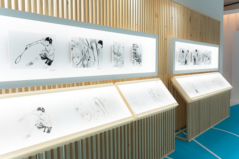 三浦糀先生の直筆原稿が特別展示されている、今回の「アオのハコ展」。髪の毛の一本にいたるまで繊細に描かれた、ここでしか見ることのできない「アオのセカイ」が広がります。