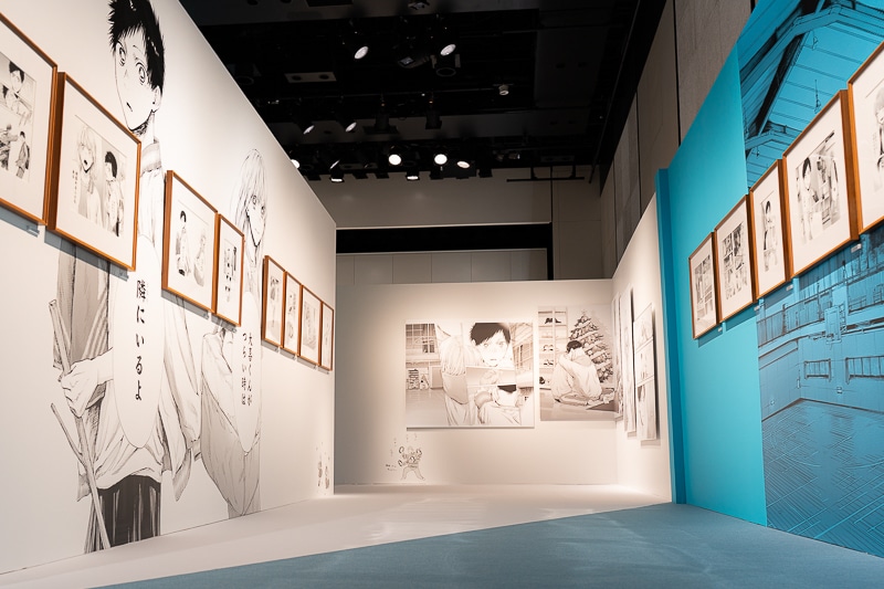 会場全体が『アオのハコ』の世界観に染まり、まるで作品の中に入り込んだかのような感覚になる本展覧会。静寂の中、ページをめくるような感覚を味わうことができました。