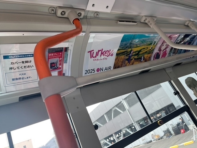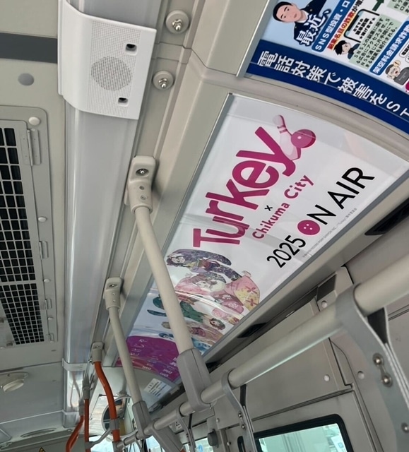 また、バス車両内にはあんずの里、姨捨の棚田など、千曲市の名所を背景にデザインした、「Turkey!」× 千曲市のオリジナルポスターを掲示しています。