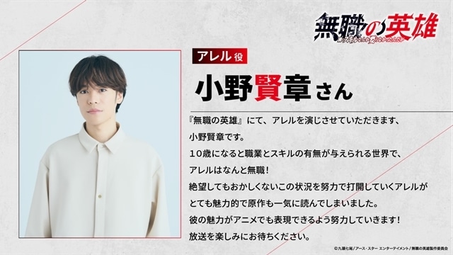 『無職の英雄 ~別にスキルなんか要らなかったんだが~』主役アレルに小野賢章さん決定! ティザービジュアル公開、2025年放送予定