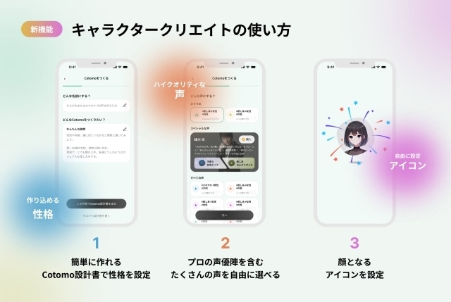 おしゃべりAI「Cotomo」で、プロの声優ボイスを活用したAIキャラクター作成機能を提供開始