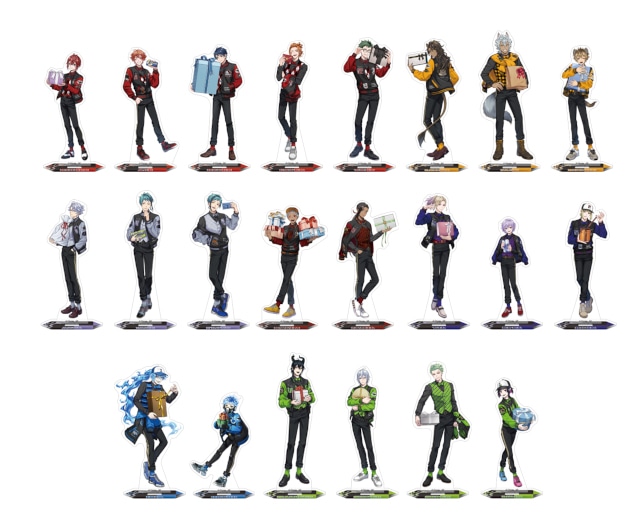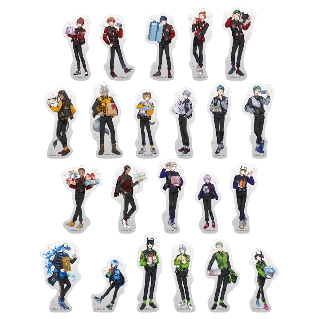 本作の新規アートを使用した「アクリルスタンド」や「缶バッジ」などの新商品が、2025年3月21日より販売! 新規アートは、ナイトレイブンカレッジの生徒22人がさまざまな色・形のプレゼントを手に微笑む、5周年を記念する特別なデザインになりますので、ぜひ店頭でお買い求めください。