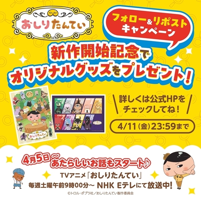 応募の詳細はおしりたんてい|アニメ公式ホームページをご確認ください。