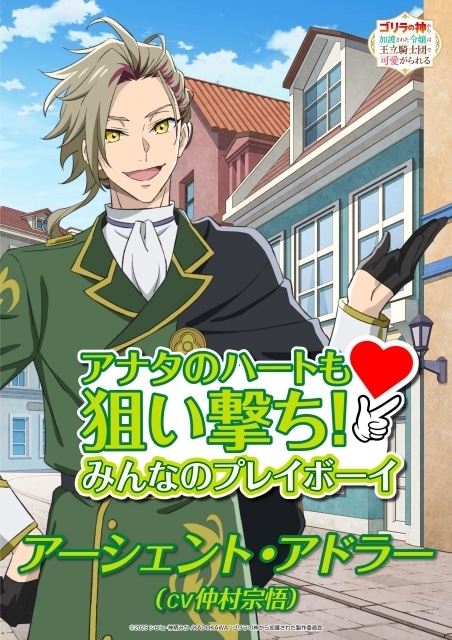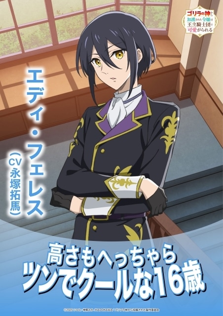 戦闘系最強と言われる【ゴリラの神の加護】を得た少女ソフィア・リーラーが、王立騎士団で奮闘する様子を描くTVアニメ『ゴリラの神から加護された令嬢は王立騎士団で可愛がられる』。