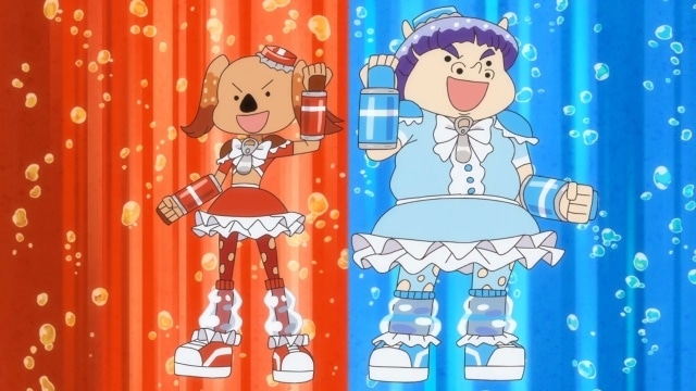 かつては金田一耕助シリーズの『獄門島』『悪霊島』、最近では『忌怪島 きかいじま』に至るまで、島が舞台、しかも“怪しい島”が舞台になっているミステリー映画は数知れず。本作もまた、アイドルコンテストが行われる【スターダス島】という離島が舞台だ。一見華やかに見える観光リゾート地だが、実は、アイドルコンテストに出場したアイドル候補者が続々と行方不明になっている、いわくつきの島なのである。本作の冒頭で、おしりたんていは、コアラちゃんから「アイドルコンテストから失踪した親戚のコーラちゃんを探してほしい」という相談を受けたことから、物語がスタート。どう考えても事件の匂いがする怪しい島に、探偵自らが捜査のために乗り込むという展開には、思わずわくわくしてしまう。ちなみに、物語の鍵を握る行方不明者の「コーラ」と、一緒にアイドルを目指している「サイダー」(声:ゆかな)が、物語の後半で、「ふたりはシュワシュワ」として大活躍するので、是非チェックしてほしい!