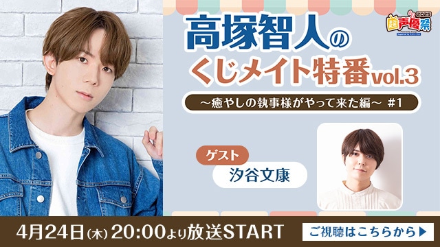 くじメイトの販売期間中に高塚智人さんがMCをつとめる「【ゲスト:汐谷文康】高塚智人のくじメイト特番Vol.3~癒しの執事様がやってきた編~」第1回がニコ生で配信!