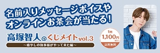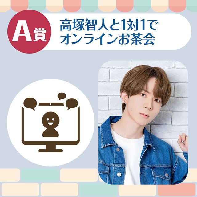 高塚智人さんとのオンラインお茶会をはじめ、撮りおろし写真(サイン入り)、シチュエーションボイスといった豪華景品をラインナップ。