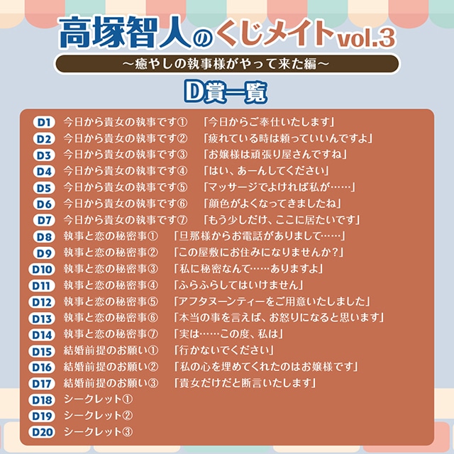 「高塚智人のくじメイトVol.3~癒やしの執事様がやって来た編~」概要