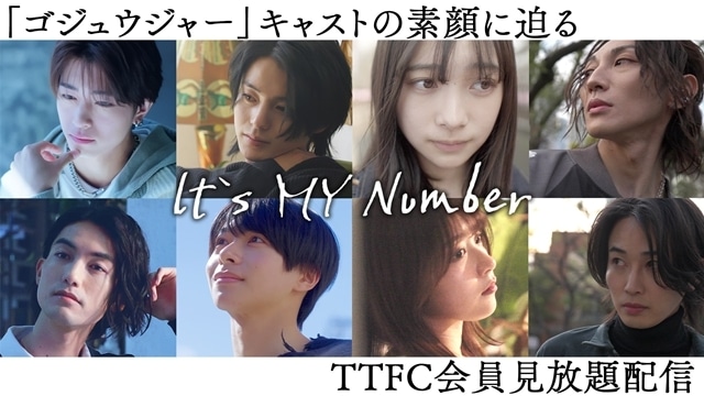 そのほかのゴジュウジャーキャスト、冬野心央さん(遠野吠/ゴジュウウルフ役)、鈴木秀脩さん(百夜陸王/ゴジュウレオン役)、神田聖司さん(暴神竜儀/ゴジュウティラノ役)、松本仁さん(猛原禽次郎/ゴジュウイーグル役)の素顔をおさめた『It's MY Number』もTTFCにて会員見放題で配信中です。こちらも併せてご覧ください。