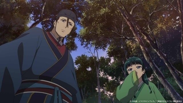 | キャスト | 猫猫(マオマオ):悠木碧 壬氏:大塚剛央 高順:小西克幸 玉葉妃:種﨑敦美 梨花妃:石川由依 里樹妃:木野日菜 阿多妃:甲斐田裕子 梅梅:潘めぐみ 白鈴:小清水亜美 女華:七海ひろき やり手婆:斉藤貴美子 羅門:家中宏 李白:赤羽根健治 小蘭:久野美咲 やぶ医者:かぬか光明 馬閃:橘龍丸 風明:日髙のり子 羅漢:桐本拓哉 翠苓:名塚佳織 陸孫:内山昂輝 鳳仙:桑島法子 皇太后:能登麻美子 子昌:チョー ナレーション:島本須美 |