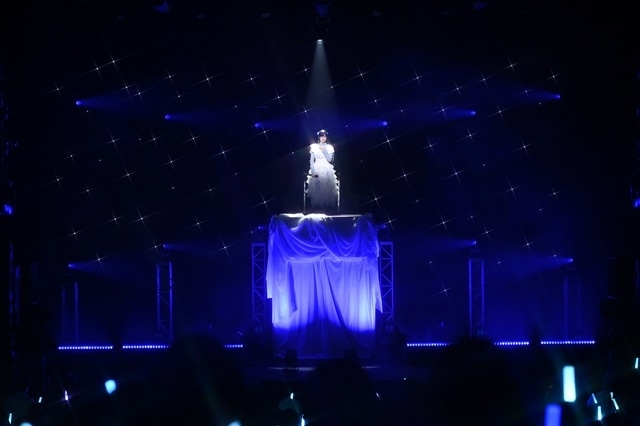 鳴りやまないアンコールの声に応えて、紗幕があがると山台の上にライブTシャツと白のスカートに着替えた前島が登場し、『星を見上げて』(M14)を歌唱。本曲はデビューアルバム『Determination』の中で唯一のバラードナンバーである。