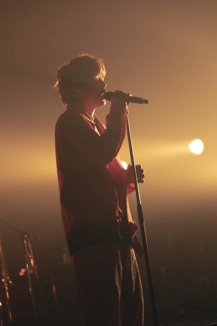 赤いライトを浴びながら、ステージをもがくように蠢きながら歌う仲村。重厚なサウンドが、観客を重い渦に呑み込ませたその後……ステージにはスモークが広がり、仲村が上手のお立ち台に淡いオレンジのライトを浴びて座り込む。静かに優しく歌い始めたのは「輝きますように」。