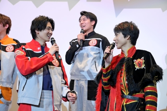 村上は「変身の揃わなさでは負けない。一回も揃わなかった。」とキングオージャーならではの負けないエピソードを挙げ、佳久は「僕らは変身の仕方がそれぞれ違うので、ステージでは大成に合わせてやっていました。彼が間違えると僕らが合わなくなるんです」と変身時の大変さを語りましたが、本作の変身ではピタッと揃ったとのこと。