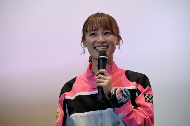 また平川はある乗り物に乗るシーンを振り返り「事前に乗ることをわかってなくて、お昼ご飯を全部食べた後に乗り物に乗ったので、めちゃめちゃ気持ち悪くて……。そのシーンではめちゃくちゃ必死な顔をしているので、この後ぜひご確認ください」と注目ポイントを挙げ、続けて鈴木が「撮影と同時にスチールも撮っていただいてたんですけど、そのスチールを見たら、笑わないリタが明らかに笑っていてました」と報告すると、平川は「不動を貫こうと思って、姿勢もピッシリして乗っていたんですけど、ふと我に帰ってというか、客観視してしまった瞬間があって、思いっきり吹き出しちゃって」と苦笑いしつつ、「その写真は後で確認してOKだったら出しときます」と約束しました。