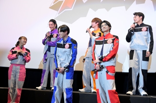 上映前の舞台挨拶が実施された本舞台挨拶には、ブンブンジャーから、ブンレッド/範道大也役の井内悠陽さん、ブンブルー/鳴田射士郎役の葉山侑樹さん、ブンピンク/志布戸未来役の鈴木美羽さん、ブンブラック/阿久瀬錠役の齋藤璃佑さん、ブンオレンジ/振騎玄蕃役の相馬 理さん、ブンバイオレット/焔先斗役の宮澤 佑さんが登壇しました。