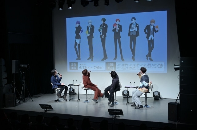 厳しいオーディションを経て天霧プロダクションに所属した6名のキャラクターたちが、Anthosとして正式デビューを目指し活動開始する様が描かれた第1話&第2話の上映後、声優陣がステージに登壇。一言ずつ挨拶を済ませて早速トークへと移りました。