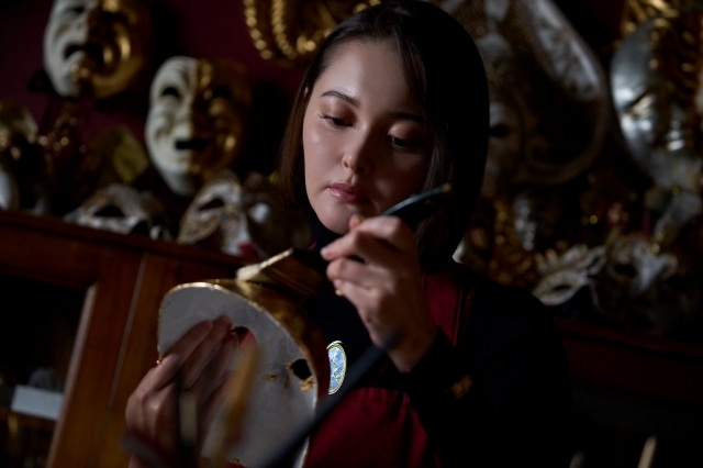 一方、仮面工房で露伴が偶然出会う幸運に翻弄される仮面職人・マリア(玉城ティナ)の新たに解禁された場面写真では、真剣な表情で繊細に仮面の手入れをする彼女の姿が映し出されている。そのミステリアスな佇まいの中にどこか哀愁を漂わせる彼女。他にもおびただしい数の仮面に囲まれながら訪ねてきた露伴を見つめるマリアの姿も収められており、ミステリアスでありながら魅惑的なマリアの姿を存分に堪能できるシーンが切り取られている。