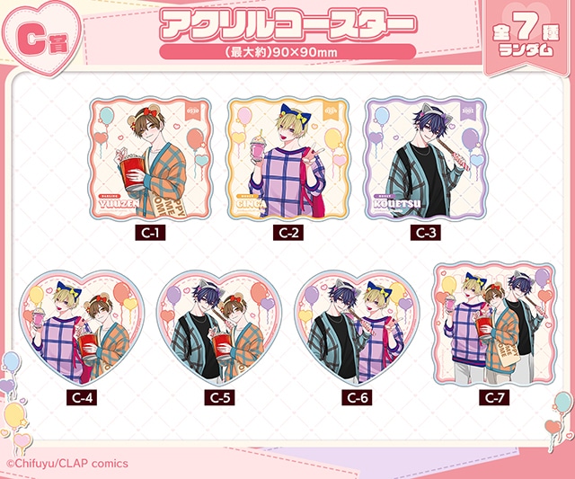 超特大アクリルスタンドやBIGアクリルスタンド、アクリルコースター、グリッター缶バッジ、カードステッカーといった豪華景品をラインナップ。中には、描き下ろしイラストを使用したアイテムも!