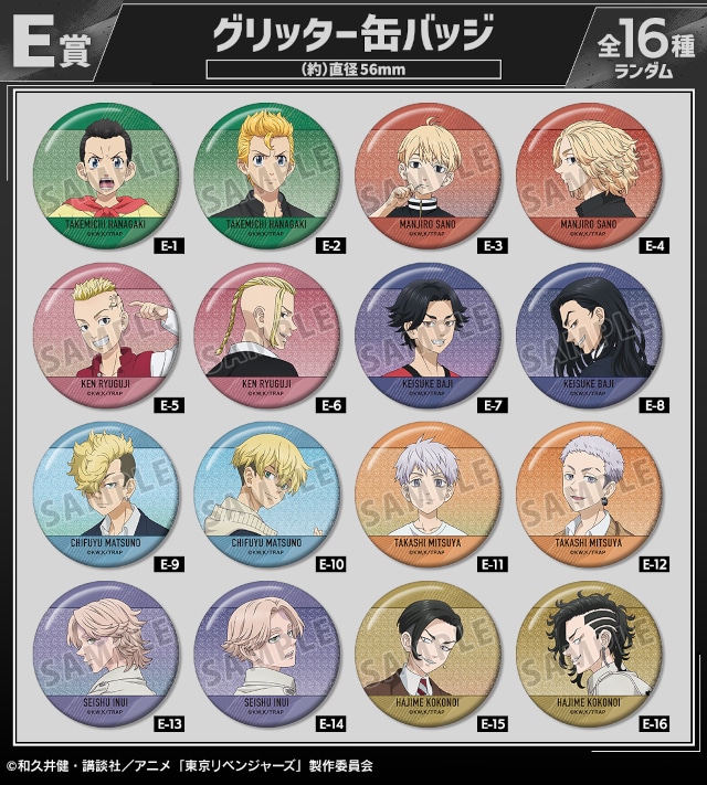 「TVアニメ『東京リベンジャーズ』 描き下ろし 過去ver./2005年ver. オンラインくじ」景品ラインナップ
