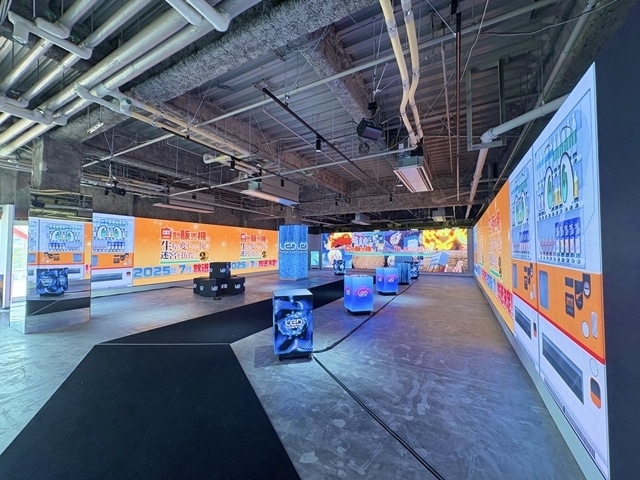 自販機・ハッコンと少女ラッミスの等身大パネルを展示しているほか、大迫力のスクリーンでPVを放映しています。
