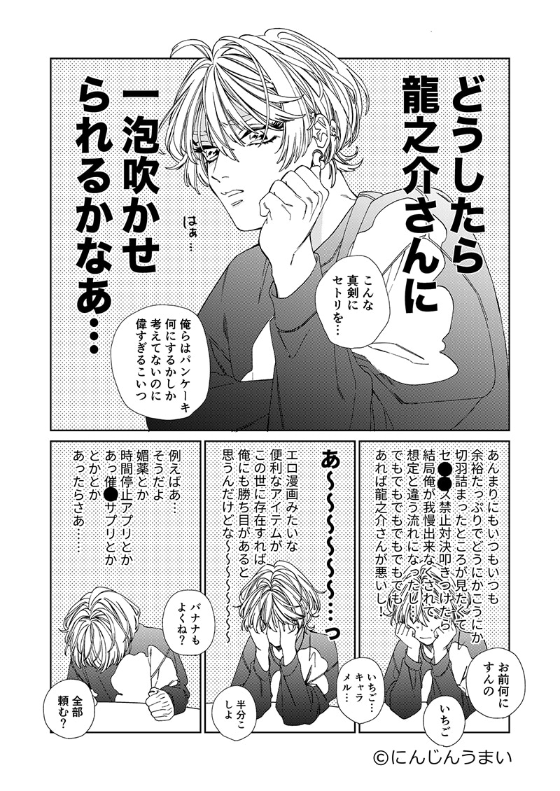 前半は龍之介に勝ちたいすばるのちょっとお馬鹿で生意気な振る舞いと、それに翻弄される龍之介という関係性に可愛さが詰まっています♡