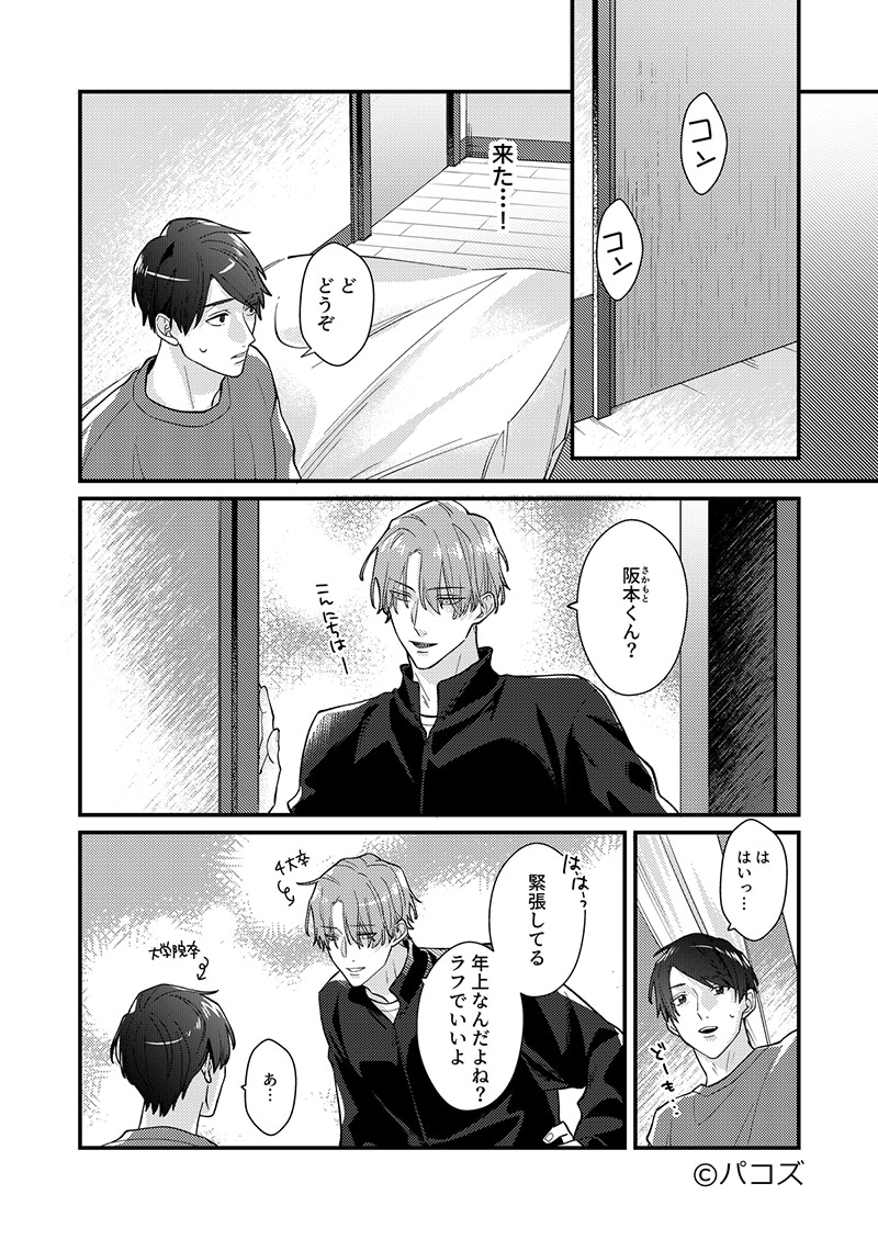 同期なのに年の差があるという、微妙なズレが心地良い2人。互いの弱みを握りあった関係は、阪本が嶋佐に流されるようにして始まりますが……。