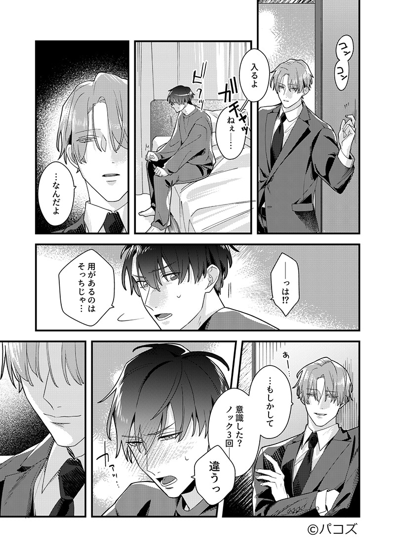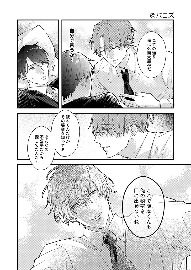 嶋佐の“弱点”とも呼ぶべきその腹黒さを唯一知っている阪本は、ある日、嶋佐に自身が敏感体質であることを知られてしまう。嶋佐に弱点を握られ、ペースに飲まれる形で関係を持ってしまった阪本。さらには「3回ノックが合図」とルールまで決められることになり、どんどんと嶋佐に呑まれていく。