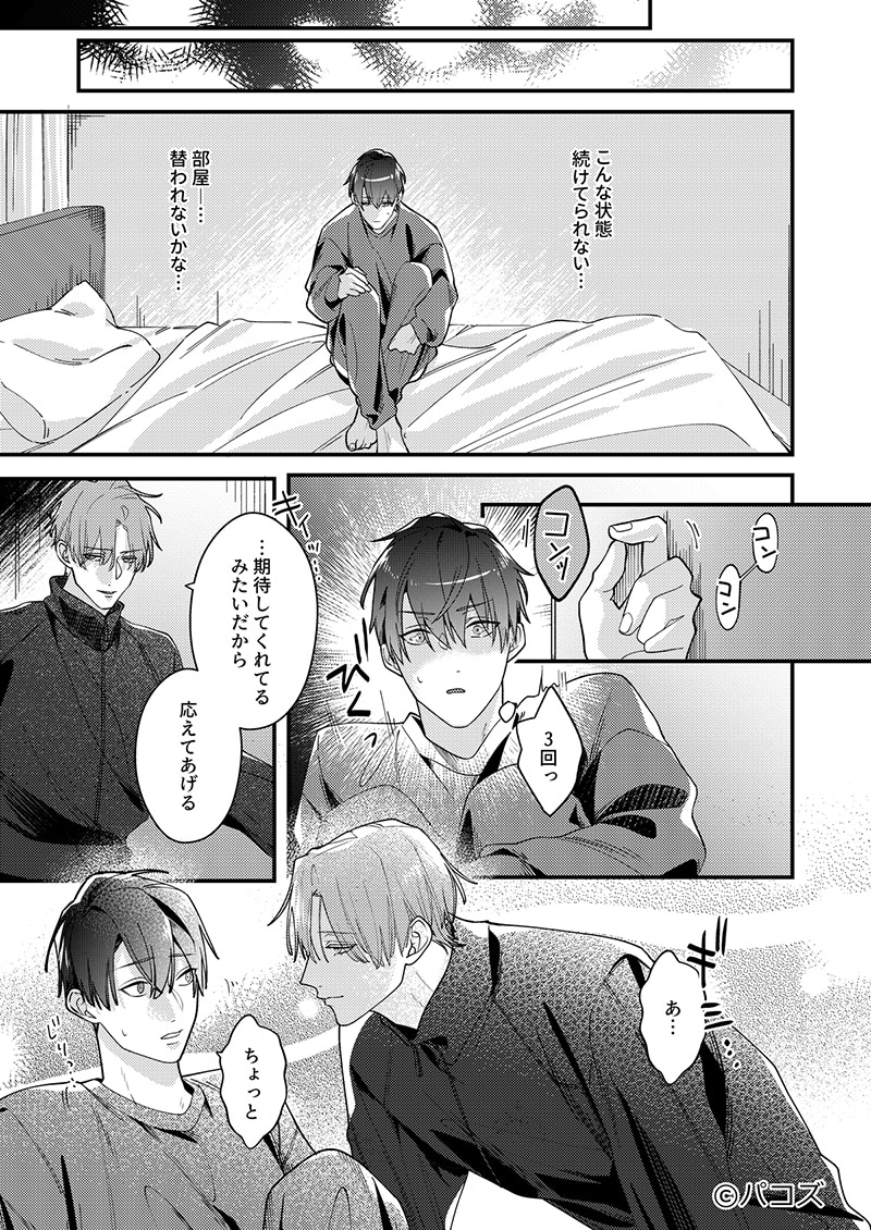 同室ゆえに日常茶飯事な嶋佐によるノック。今のは3回?それとも2回?扉を叩かれるたびに期待と不安が入り混じった表情を浮かべる阪本が、可哀想であり可愛いです。