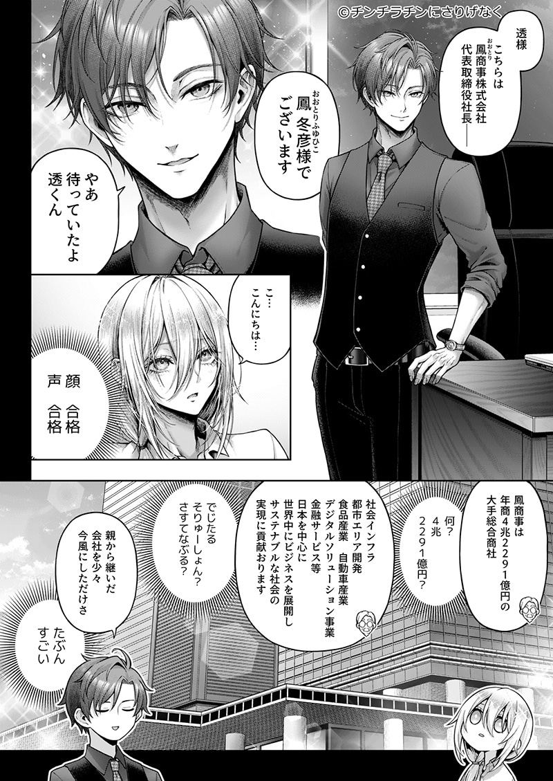冬彦から、10点満点中100億満点の寵愛を受ける透は、ヒモニート生活を送っていた過去を悔い改め、自分を変えようと決意する。しかし透の決意を阻むように、彼の過去を知る男たちが現れ…。