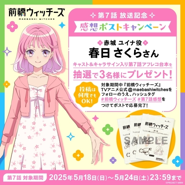 オリジナルアニメ『前橋ウィッチーズ』の放送を記念して、赤城 ユイナ役 春日 さくらさんのキャスト&キャラサイン入り第7話台本を、3名様にプレゼントいたします。