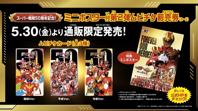 5月30日(金)より発売の第2弾ムビチケ前売券の購入特典は、スーパー戦隊50周年記念ビジュアルのミニポスターとなっています!