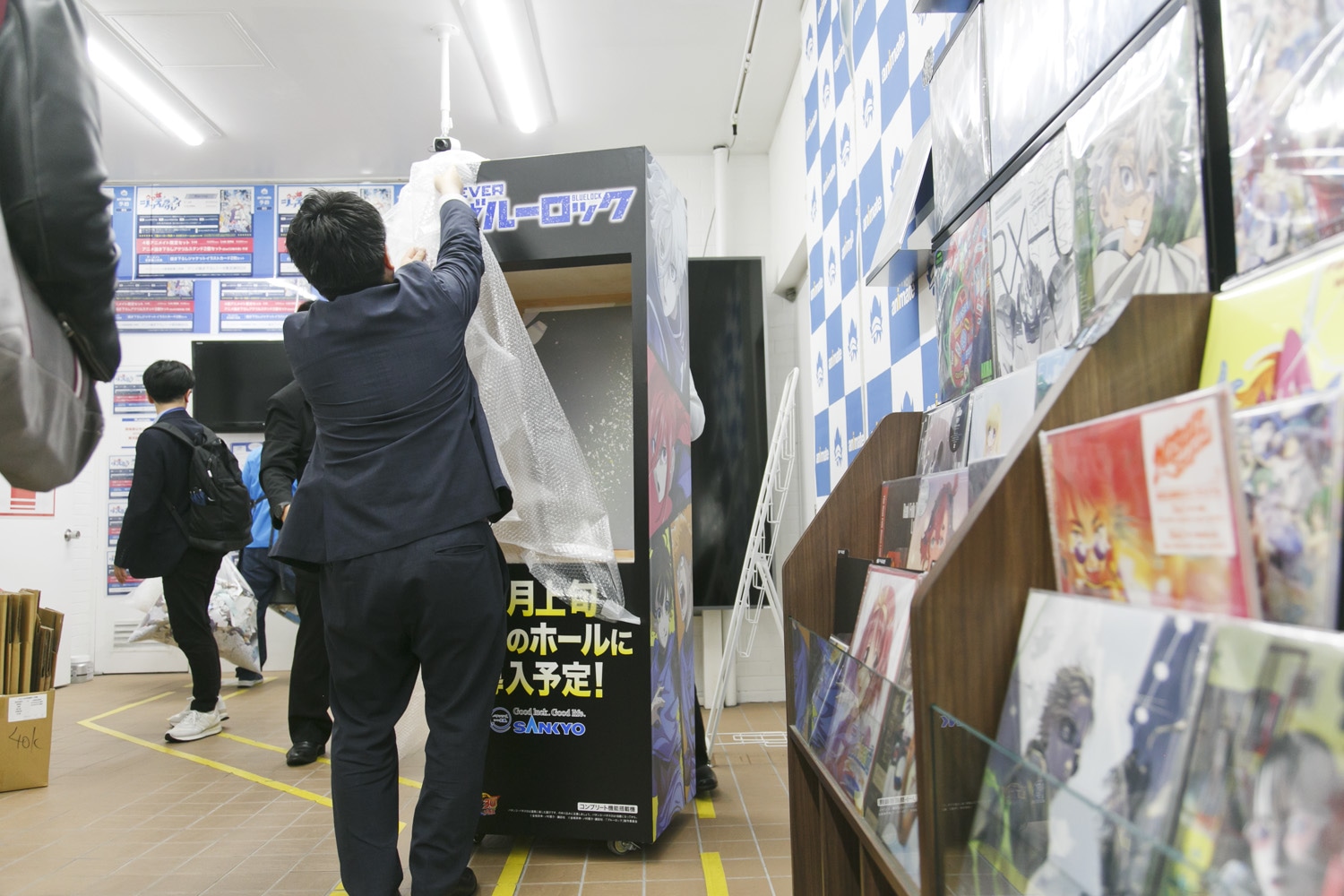 前日の閉店後に設置を行うと聞きつけたアニメイトタイムズ取材班は、ぜひその様子を取材したいとお願いして、特別に見させてもらうことに成功! 実機の写真と共に設置の様子をレポートしていきます!