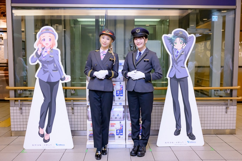 コラボ初日には紫雲寺万里役の安済知佳さん&紫雲寺南役の菱川花菜さんが実際に成城学園前駅を訪れ、安済さんが1日駅長、菱川さんが1日乗務員としてお仕事体験を行いました。